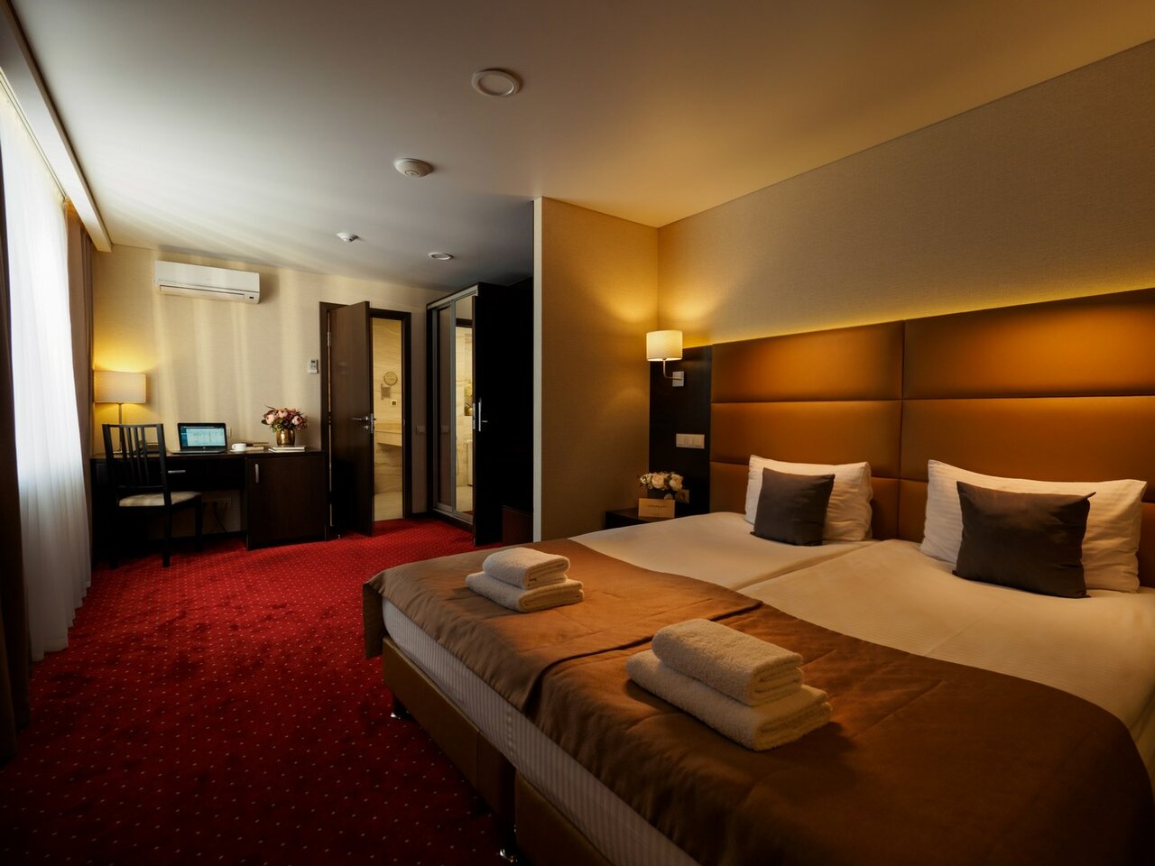 "Премьер Отель" своим клиентам предлагает комфортные номера трех категорий, которые соответствуют стандартам, принятым в отельном бизнесе. Это - двухместные номера Standart (Double/Twin), Standart Plus (Double/Twin) и Delux (Double/Twin). Ванная комната с надежной и модной сантехникой. В "Премьер Отеле" предусмотрены автопарковка, камера хранения, сейф, услуги прачечной, консьержа, ресторана, сувенирного магазина, конференц-зала, трансфер, горячий завтрак, услуга «Ранний заезд» и «Утренний звонок».